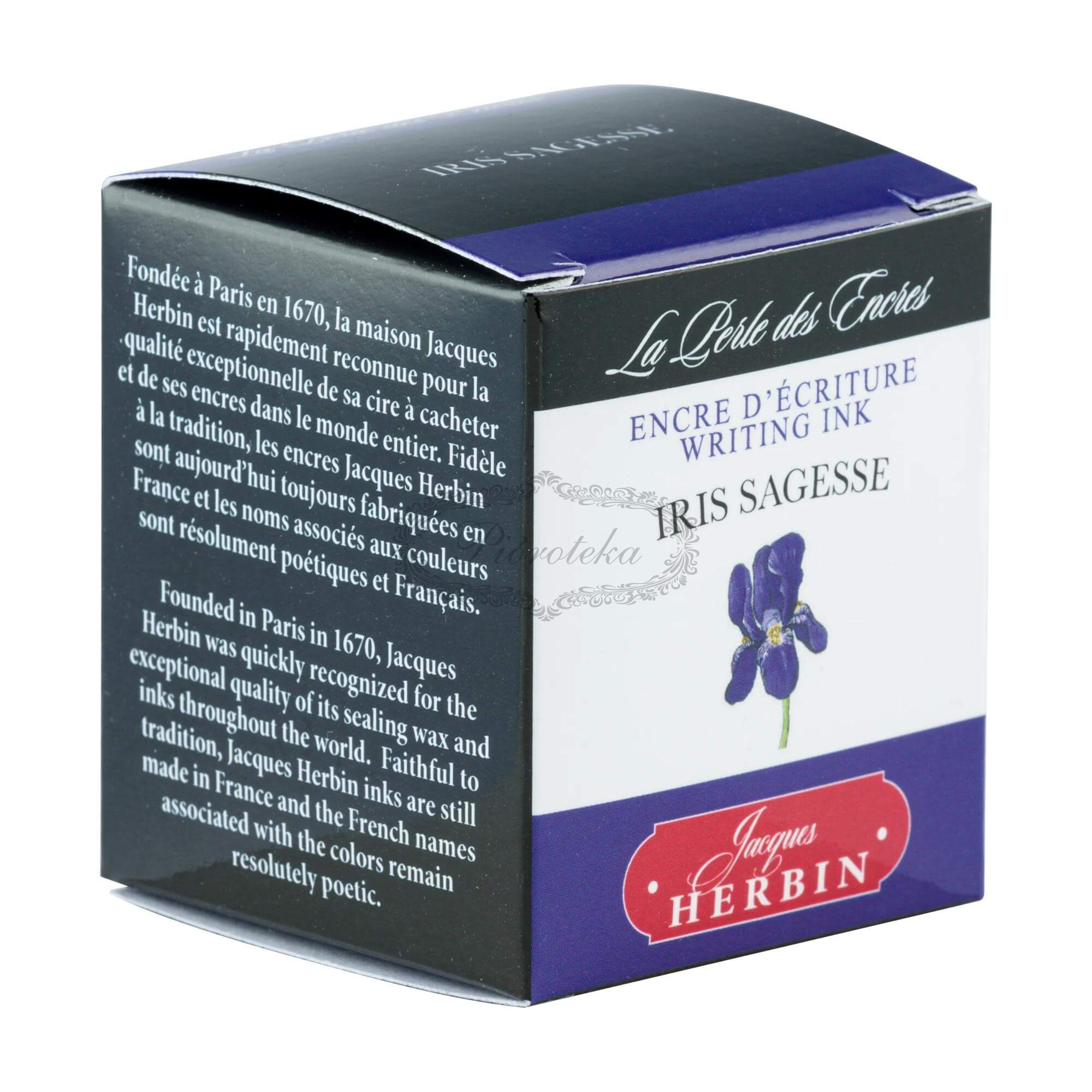 Iris Sagesse (Mądrość Irysa) to piękny odcień fioletowego atramentu, należący do klasycznej gamy J. Herbin. J. Herbin to najstarsza marka atramentów na świecie, założona w Paryżu w 1670 roku.