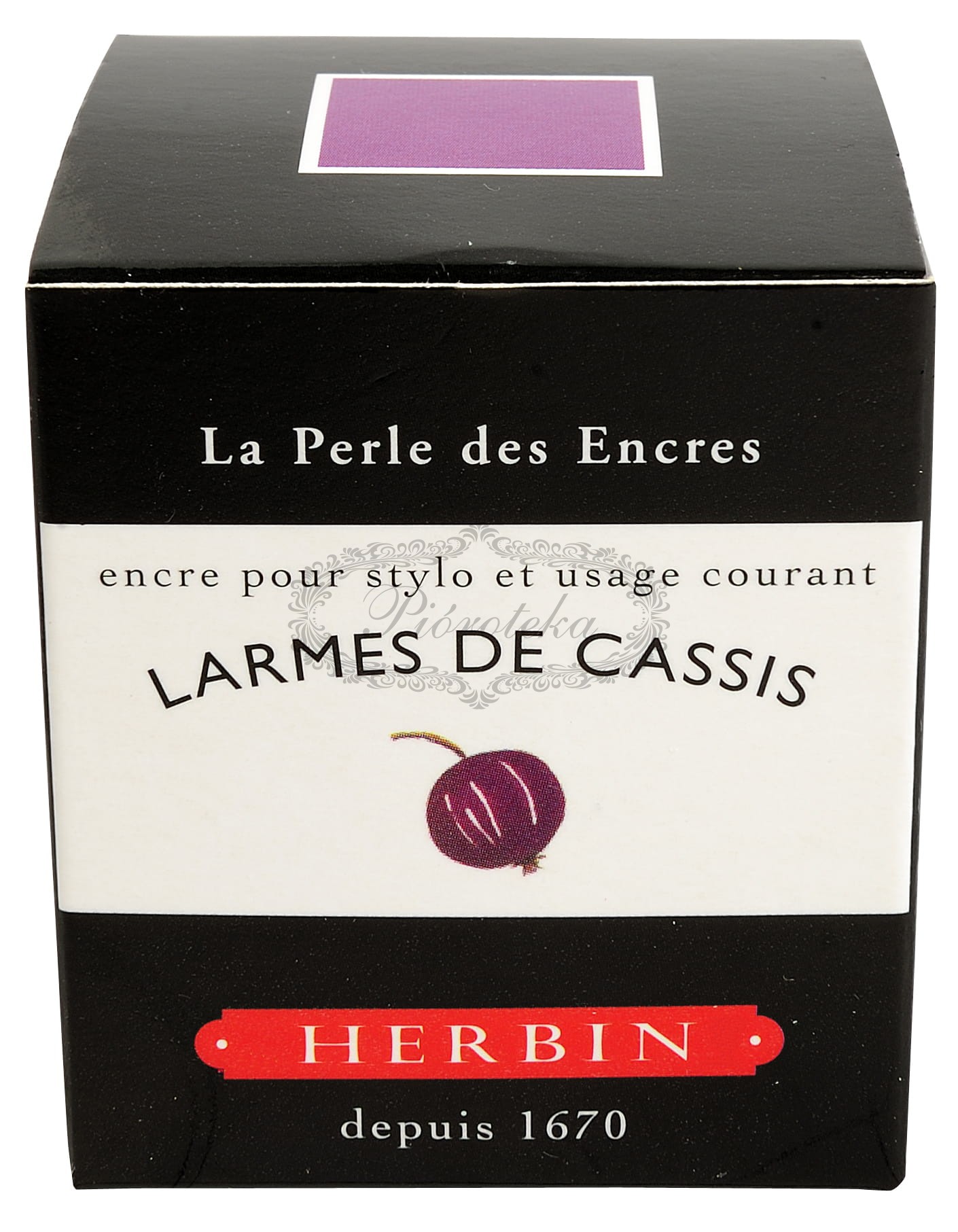 Larmes de Cassis (Łzy Czarnej Porzeczki) to głęboki, ciemny odcień fioletowego atramentu, który w symbolice marki J. Herbin bywa określany jako symbol żalu i pokuty. Należy do cenionej serii La Perle des encres, pochodzącej od najstarszej manufaktury atramentów na świecie, J. Herbin, założonej w Paryżu w 1700 roku.