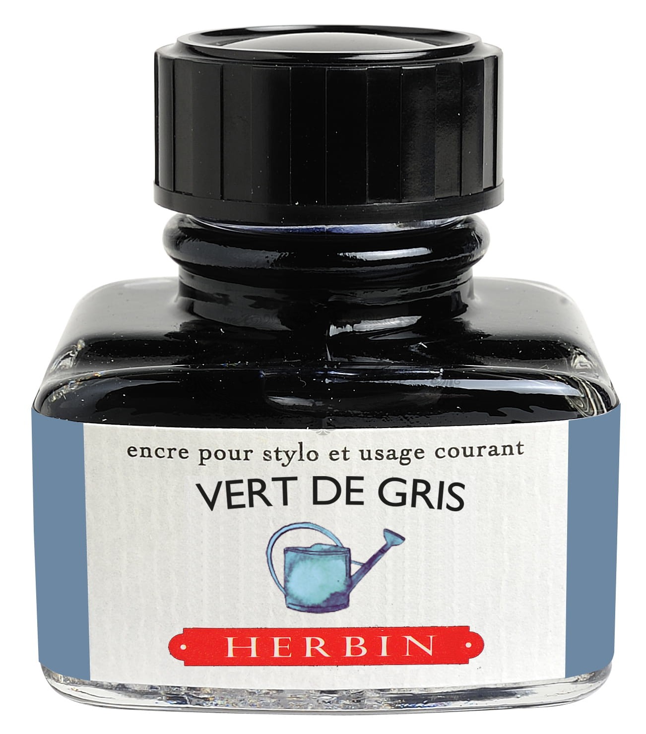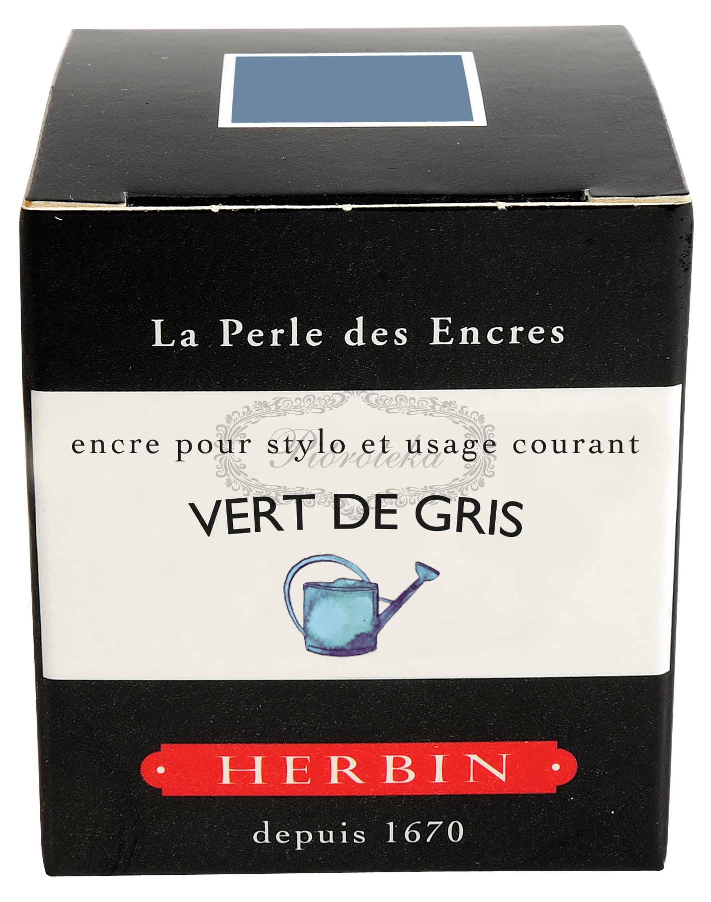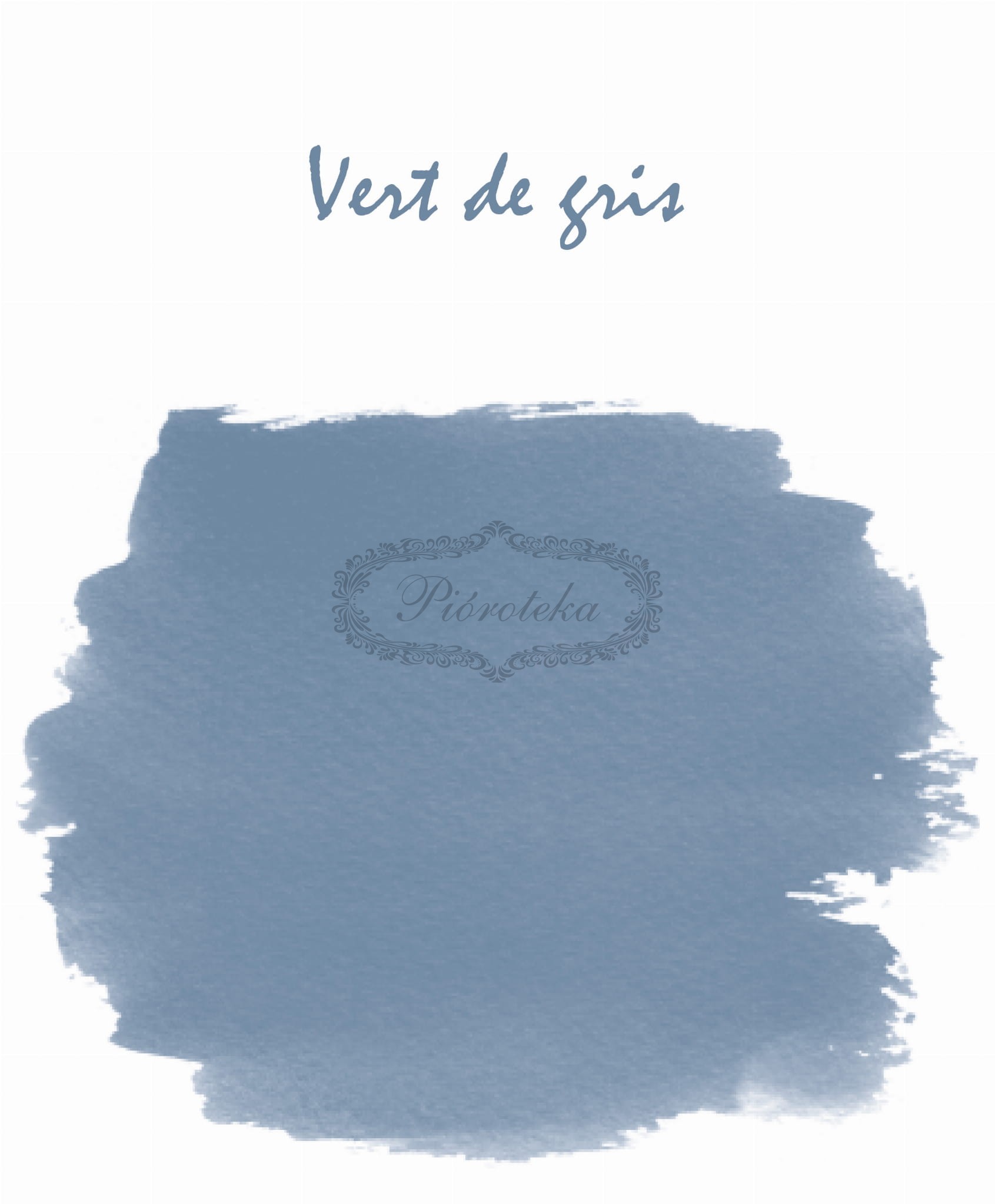 Vert de gris (Zieleń szarości) to atrament o unikalnej, stonowanej barwie, która łączy odcienie zieleni i szarości. Nazwa nawiązuje do koloru patyny (śniedzi), czyli korozji miedzi. Szarość w tym kolorze harmonizuje zarówno z jasnymi, jak i ciemnymi barwami, tworząc miękkie, a jednocześnie głębokie pismo.