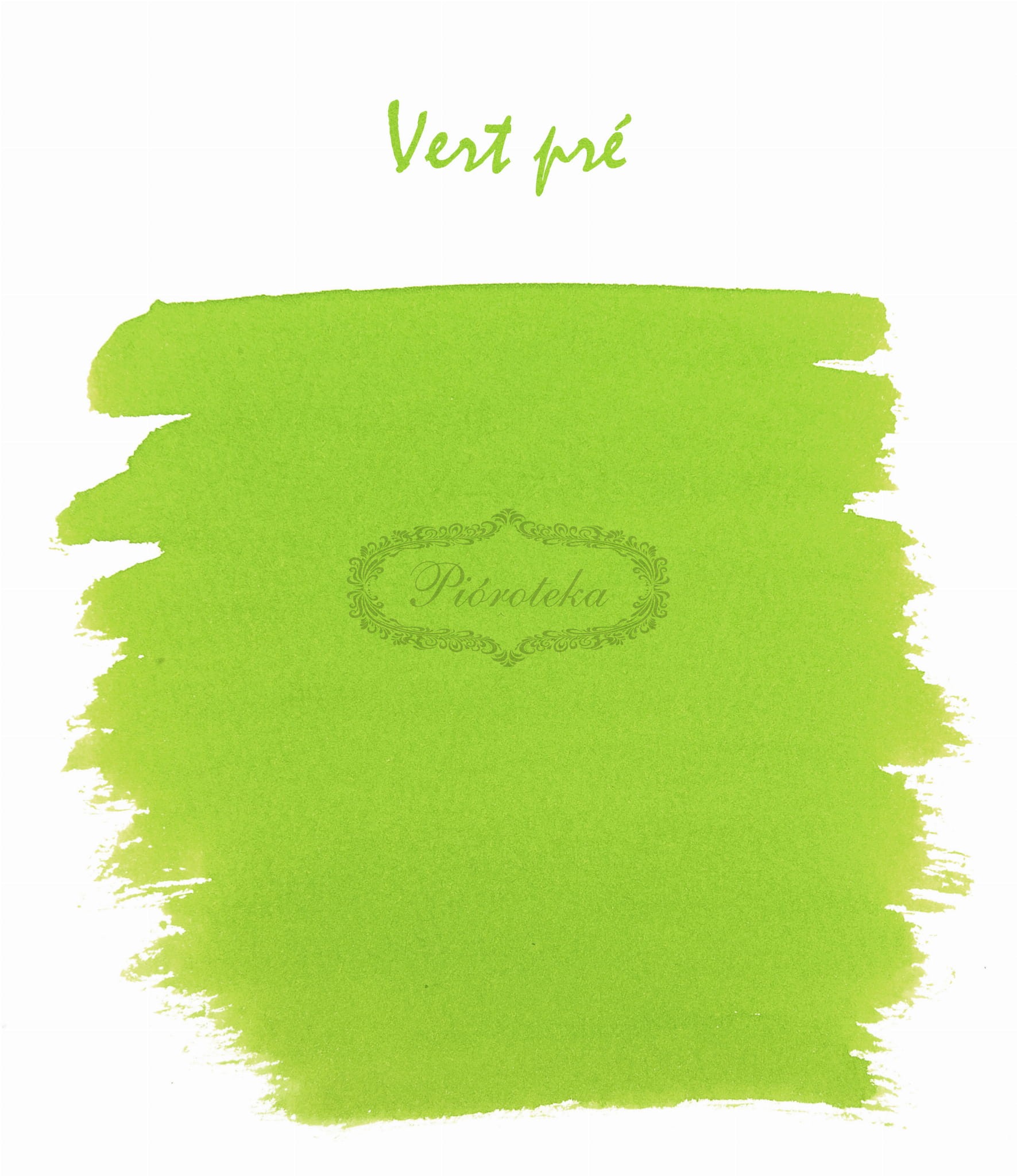 Vert pré (Zielona Preria) to atrament o bardzo świeżym odcieniu zieleni, idealnie oddającym barwę łąki i nowej trawy, która pojawia się po zimie. Jest to kolor kojarzący się z sezonem wiosennym.
