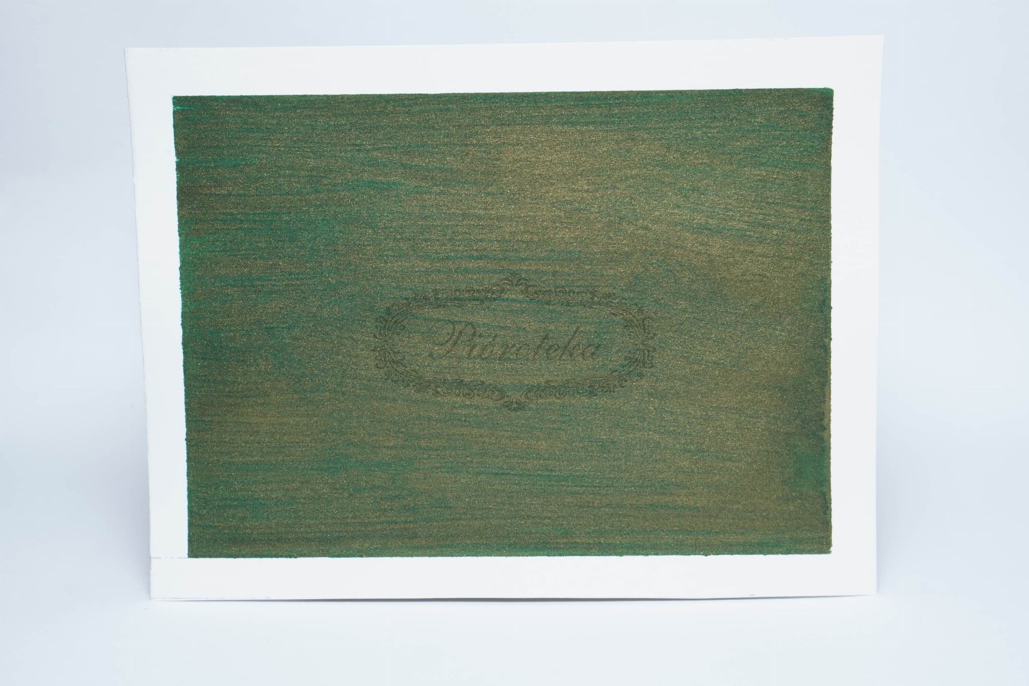 Głęboka, butelkowa zieleń w połączeniu ze złotymi refleksami najlepiej prezentuje się na papierach premium o gładkiej strukturze (takich jak Rhodia, Oxford czy Tomoe River). Na takich powierzchniach atrament nie zostaje całkowicie wchłonięty przez włókna, pozwalając złotym drobinkom stworzyć mieniącą się taflę. To doskonały wybór do eleganckiej korespondencji, wypisywania dyplomów czy prowadzenia stylowego dziennika.