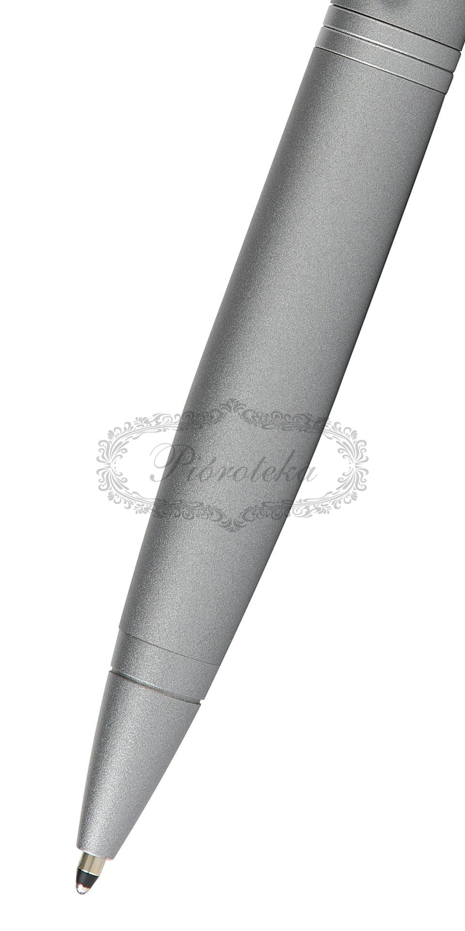 - Nowoczesny i techniczny design: Odważna sylwetka w połączeniu z eleganckim lakierem w kolorze tytanowej szarości sprawia, że długopis prezentuje się niezwykle nowocześnie. Wzór perforacji na skuwce dodaje mu unikalnego charakteru.