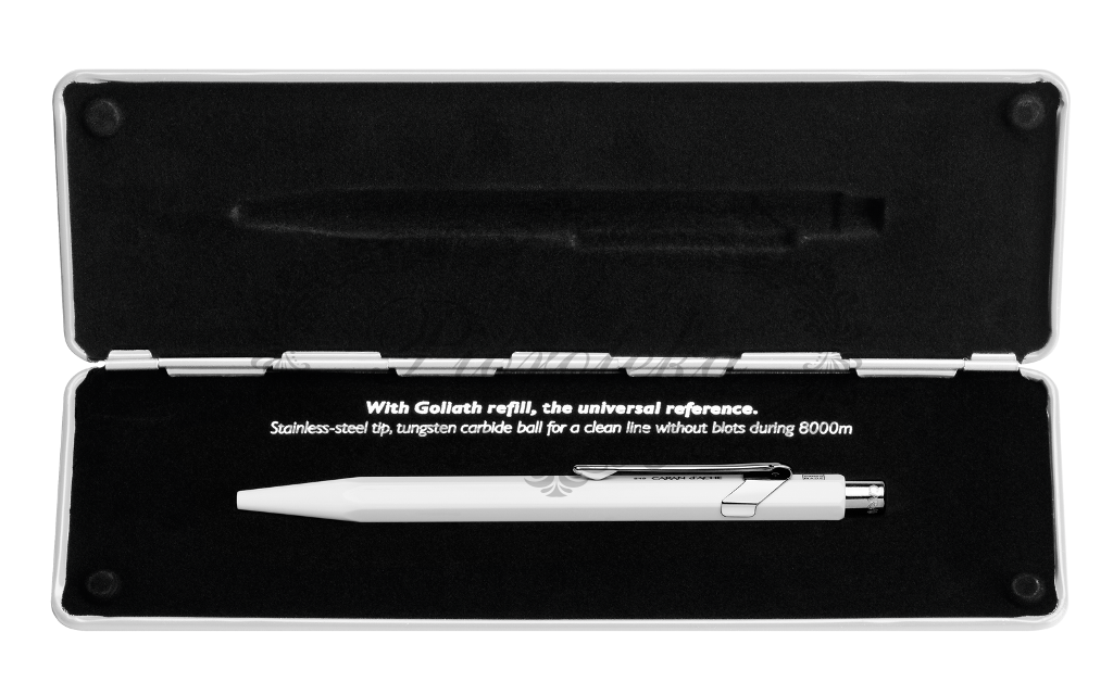 Długopis Caran d'Ache 849 Pop Line Biały to synonim niezawodności i szwajcarskiej precyzji. Wyposażony jest w przyciskowy mechanizm wysuwania wkładu oraz wymienny wkład Caran d'Ache Goliath, który gwarantuje do 600 stron płynnego pisania. Solidny, elastyczny metalowy klips ułatwia przenoszenie długopisu w kieszeni lub notesie.