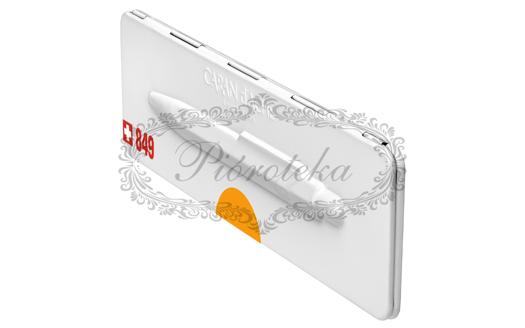 Długopis 849 Pop Line Fluo w kolorze fluorescencyjnej pomarańczy nie pozostaje niezauważony. Jego sześciokątny korpus wykonany jest z lekkiego i wytrzymałego aluminium, które zostało pokryte żywym kolorem metodą elektrostatycznego malowania proszkowego, zapewniając trwałe i wyraziste wykończenie. Charakterystyczny, elastyczny klips oraz przyciskowy mechanizm wysuwania wkładu są solidnie wykonane i zaprojektowane dla optymalnego komfortu użytkowania. Na przycisku wygrawerowano laserowo logo Caran d'Ache, co świadczy o dbałości o detale i autentyczności marki. Mimo zmieniających się trendów, kultowy kształt 849 pozostaje niezmienny, doskonale dopasowując się do każdej dłoni.