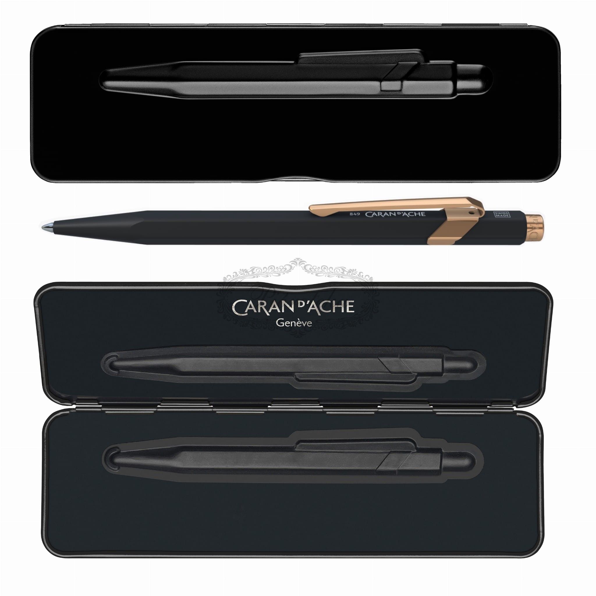 Długopis Caran d'Ache 849 czarny mat GT - ponadczasowa elegancja z akcentem różowego złota
