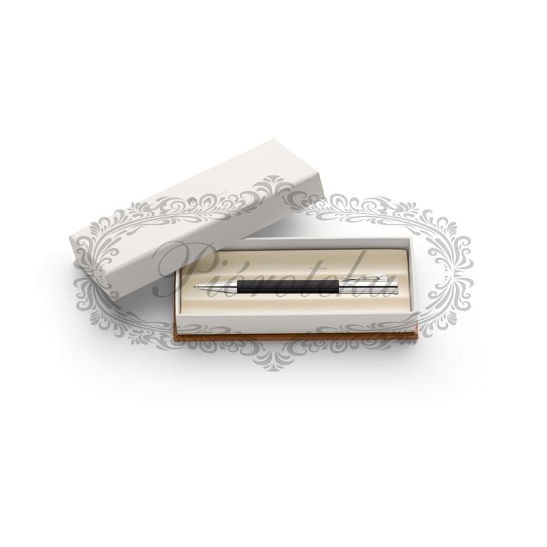 Długopis Tamitio Black wyróżnia się matowo lakierowanym, metalowym korpusem, który jest delikatnie karbowany, nadając mu unikalną teksturę i przyjemny w dotyku charakter. Głęboka czerń jest podkreślona przez chromowane, wysoko polerowane metalowe elementy, które harmonijnie współgrają z matową powierzchnią. Długopis posiada również solidny, sprężysty klips, który dodaje mu funkcjonalności i eleganckiego wykończenia.