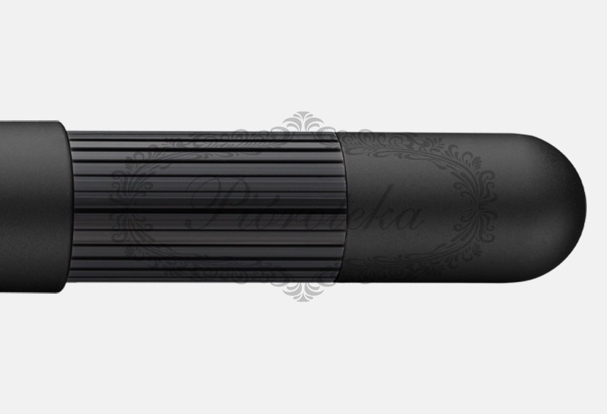 Korpus wykonany jest z litego mosiądzu, co zapewnia mu przyjemną wagę i wyjątkową odporność na uszkodzenia. Matowy czarny lakier nadaje mu nowoczesny, nieodbijający światła wygląd, podkreślony przez subtelne, chromowane detale.