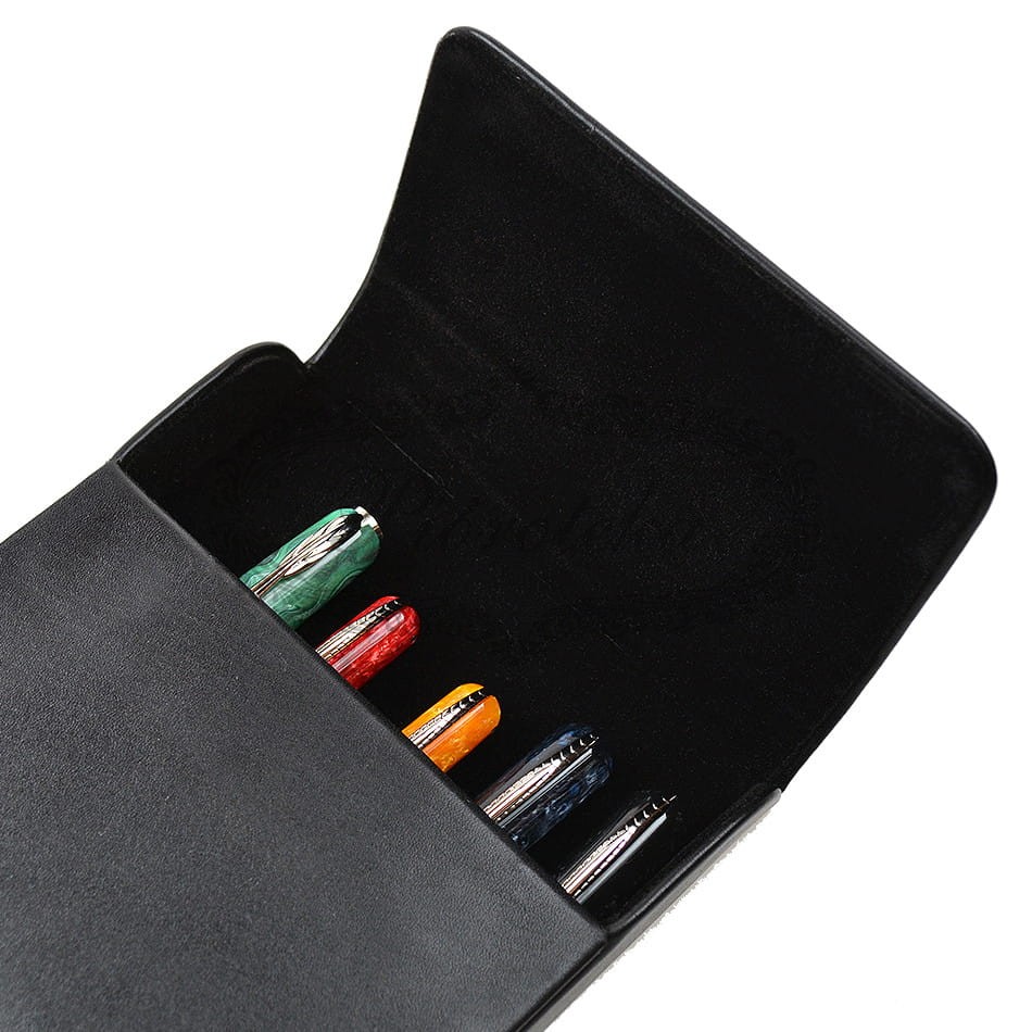 Ekskluzywne skórzane etui na 6 piór wiecznych Pineider czarne - Włoski luksus i tradycja z magnetycznym zamknięciem dla kolekcjonera