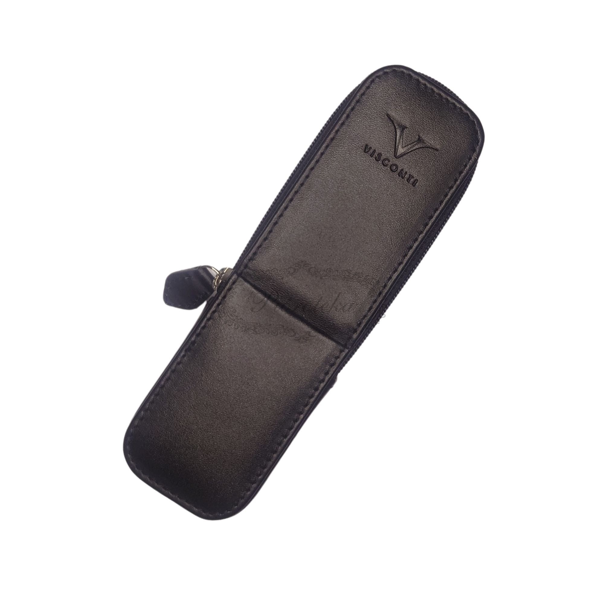 Ekskluzywne etui na pióra VISCONTI podwójne czarne - Skórzane etui na dwa pióra wieczne