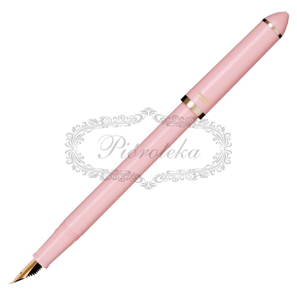 Korpus pióra wykonano z wysokiej jakości żywicy o pięknym, perłowym wykończeniu w kolorze jasnego różu. Złocona stalówka dodaje całości elegancji i podkreśla wysoką jakość wykonania charakterystyczną dla marki Sailor. Dłuższa konstrukcja korpusu ułatwia odpowiednie wyważenie pióra w dłoni, co przekłada się na komfort nawet przy wielogodzinnym szkicowaniu. Zakręcana skuwka skutecznie zabezpiecza stalówkę i chroni atrament przed wysychaniem, gwarantując płynny start przy każdym użyciu.