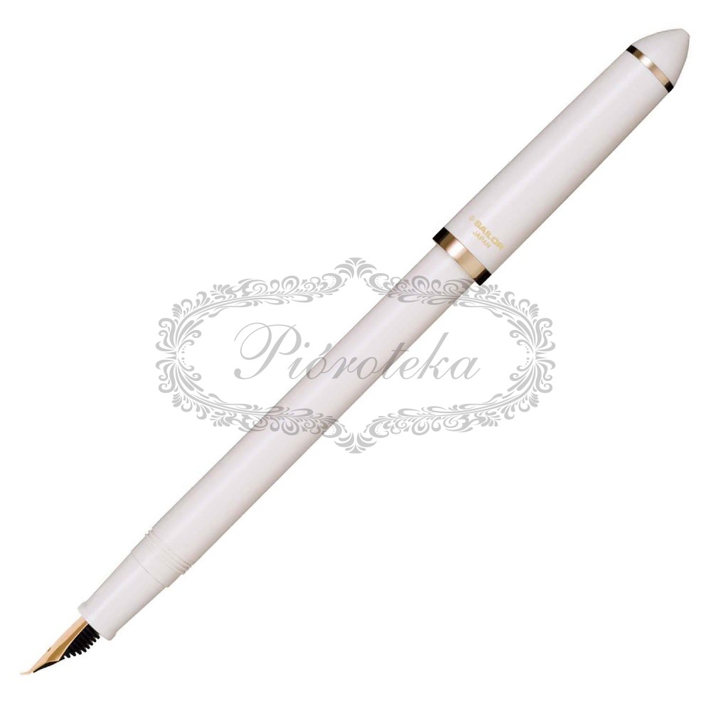 Model ten przyciąga wzrok perłowo-białą obudową wykonaną z wysokiej jakości żywicy, która subtelnie mieni się w świetle. Złocona stalówka idealnie komponuje się z jasnym korpusem, podkreślając prestiż marki Sailor. Dłuższa konstrukcja pióra zapewnia optymalne wyważenie, co pozwala na długotrwałe tworzenie bez zmęczenia dłoni. Zakręcana skuwka gwarantuje szczelność i chroni atrament przed wysychaniem, dbając o nienaganną pracę stalówki przy każdym otwarciu.
