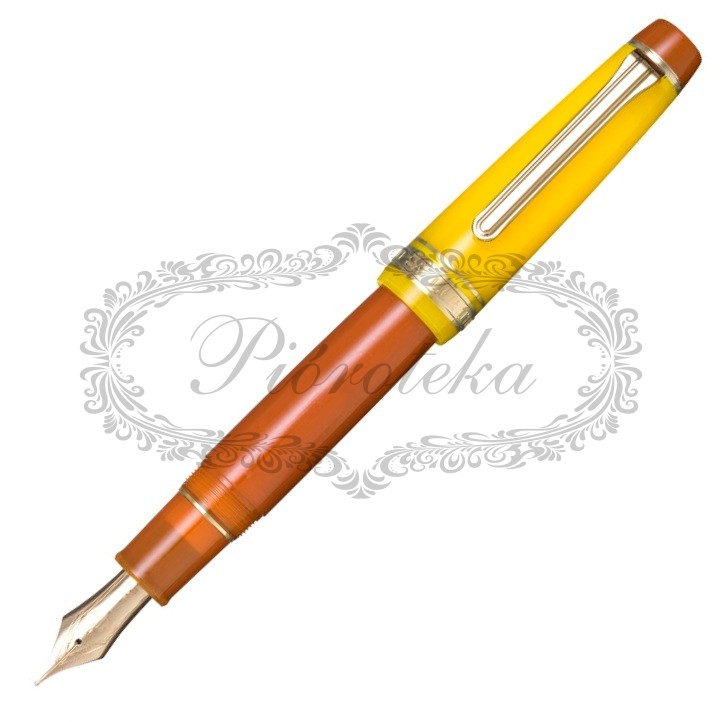 Sercem pióra jest imponująca, największa w ofercie marki stalówka wykonana z 21-karatowego żółtego złota. Jej jednolity, złoty kolor idealnie koresponduje z metalowymi elementami wykończenia. Stalówka w rozmiarze King Size słynie z wyjątkowej responsywności i sprężystości, oferując pisarskie doznania na najwyższym światowym poziomie. Każde pociągnięcie to idealny balans między gładkością a charakterystycznym dla Sailora sprzężeniem zwrotnym (feedbackiem).
