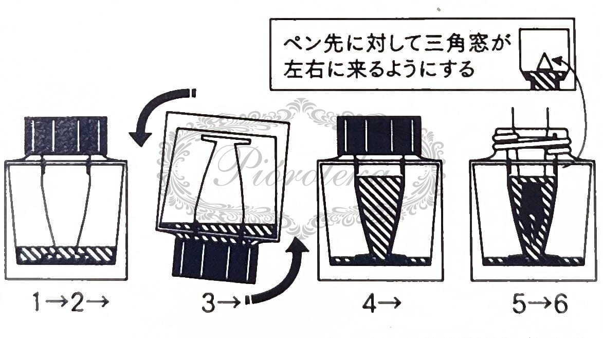 Dzięki precyzyjnemu dopasowaniu do kwadratowych kałamarzy Sailor 50 ml, użycie zbiorniczka jest proste: wystarczy włożyć go do butelki. Po obróceniu butelki do góry dnem, atrament zbiera się wewnątrz zbiorniczka o wymiarach φ20×50,3 mm (średnica 20 mm, wysokość 50,3 mm). Po ponownym odkręceniu kałamarza, możesz wygodnie zanurzyć w nim swoje pióro i napełnić je ze zgromadzonego atramentu.